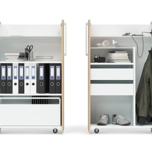 A comfortable and modern working environment should be both ergonomic and high-tech and at the same time well-organised. It is best to ensure that your office supplies and personal belongings are close at hand but do not get in your way. This allows employees to create a personalized workplace that makes them feel comfortable. BOXI storage tower is a simple and universal solution designed to accommodate all office essentials for the daily needs in the office. Thanks to its storage capacity, it can be adjusted to meet specific storage needs of employees and ensures that all essentials are within their reach. A closed storage tower makes an individual workplace well-organised and attractive.
