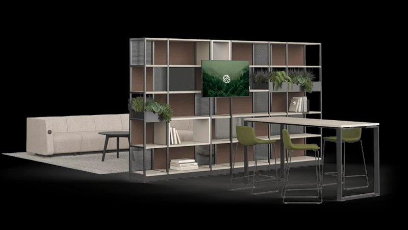 COMBUS is an excellent tool for the dividing and realisation of functional office areas for versatile usage options. This shelving system can be used in the middle of a space, against a wall or shaped as a corner. With this collection, you can divide the spaces in your open-plan office, to give them the level of privacy they need. For example, higher and more closed shelving can create a more private working or lounge area, while shorter shelves can define spaces where employees do not feel separated from each other.