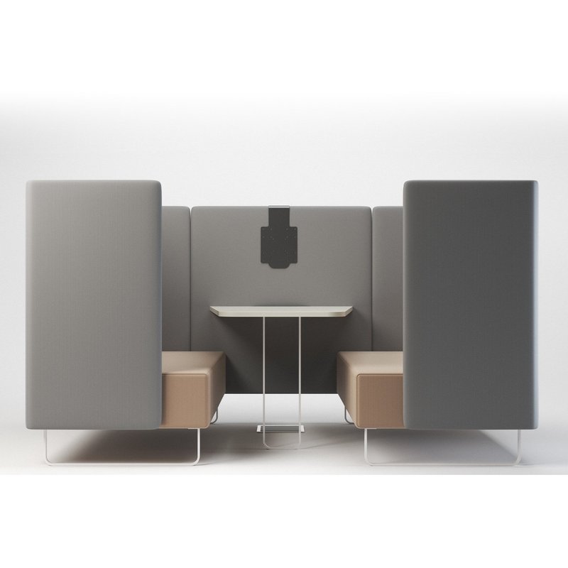 Riverbend sofas and ottoman create settings that invite social interaction, casual meetings, and group work. Riverbend Meeting Box provides privacy for concentrated work or collaboration up to 6 persons. The semi-enclosed settings are ideal if you want to create a smooth transition in between zones or create inviting welcome areas.