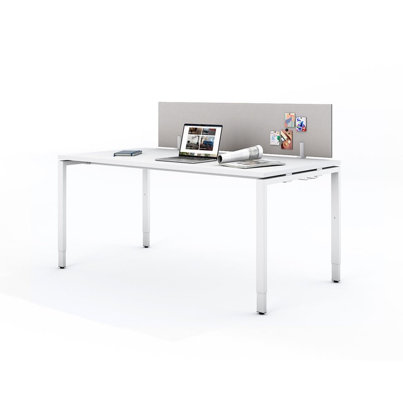 The desk top appears to float gently over the frame, and with extended solutions it is possible to share a single leg for two tops, saving space and cost.