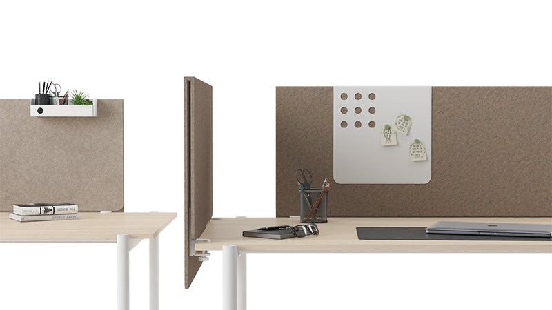 Non-typical felt sheet bending totally hides its supporting structure, while the extended edge covers the cable tray and wires. This way a workplace looks neat and aesthetic.